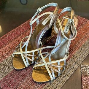 Steve Madden Bronze, Gold & Silver Strappy Sandals with Wedge Heels Size 10
