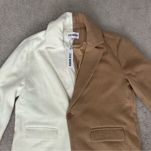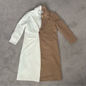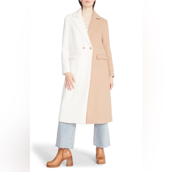 Steve Madden Caroline Colorblock Coat! This jacket is brand new with tags, but it is missing one of the front buttons and has 2 small marks on the front, as shown in the last photo. There is an extra button that can be sewn on.