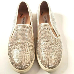 Steve Madden Champagne Rinestone Slip on Platform Flat Sneaker Sz 7 US