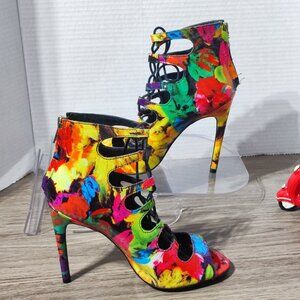Steve Madden Cythiaa Peep-Toe Heels women's size 8 multi-colour rainbow Lace Up