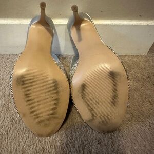 Step out in style with these dazzling silver rhinestone heels. Perfect for any special occasion, these shoes add a touch of glamour to your outfit.