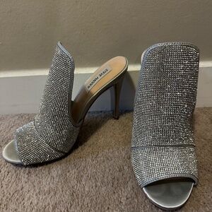 Steve Madden - Elegant Silver Rhinestone Heels - mule peep toe style - 38/8