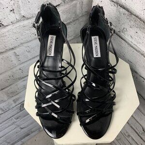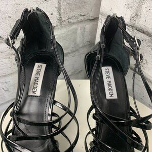 Steve Madden Fairyy Strappy Black Patent Leather High Heel Sandals. Adjustable side straps, back zipper enclosure. Please reference pictures for normal wear