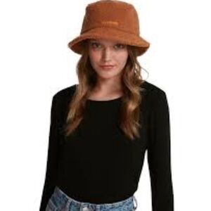 Signature Steve Madden engraved Bucket Hat in cognac Sherpa
