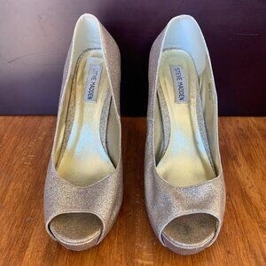 Steve Madden Gold Glitter Sparkly Peep Toe Heels