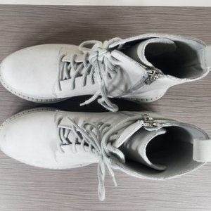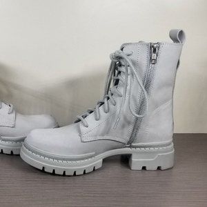 Steve Madden Jamisyn Lace-Up Leather Combat Boot, Light Gray, Womens Size 8 M