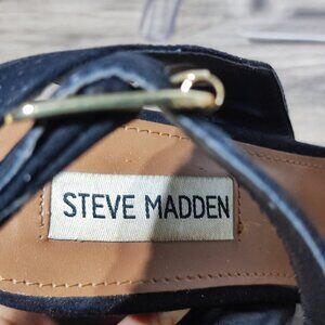 Steve Madden Kali Chunky Heels women's size 8.5 black flocked fabric