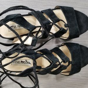 Steve Madden 'Kitty' Ghillie Sandal, Black Suede, Womens Size 8