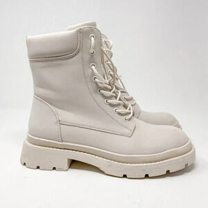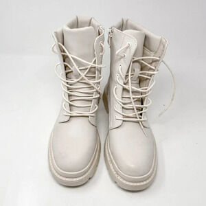 Steve Madden Lace Up Faux Leather Elena Boots Bone White Cream Size 10