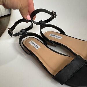 Steve Madden Lahnee black leather flat ankle strap sandals size 7.5