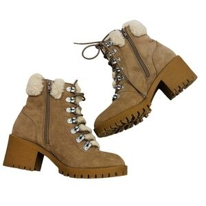 Steve Madden MADDEN GIRL Hidde Faux-Fur Hiker Booties LIKE NEW SZ 8