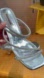 Chic metallic silver heels with elegant straps. Perfect for a night out. Heel measurement as per photo. Heels are in very good preowned condition