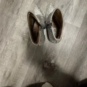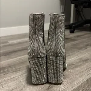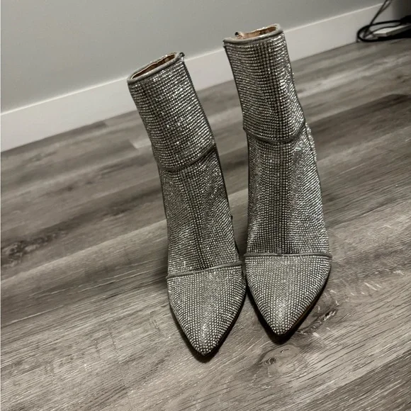 Brand new never worn noticedr silver booties. Over 30k rhinestones, 4 inch heel