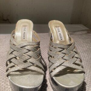 Steve Madden Platform Silver Glitter Sandals. Lightly worn! A real eye-catcher!!