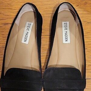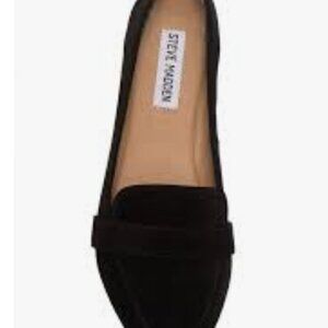 Black suede. First image shows them in leather to display the style. A really modern take on the classic loafer. Jainna style. In very good used condition. Still lots of life left in these! 8 M.