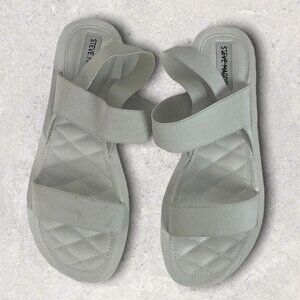 Rafa Sandals by STEVE MADDEN in White and Women's Size 9.5. From Nordstrom. Retails for $60 USD (approximately $96 CAD). Elastic straps and a quilted footbed bring all-day ease to a slingback sandal that's sure to become your warm-weather go-to.