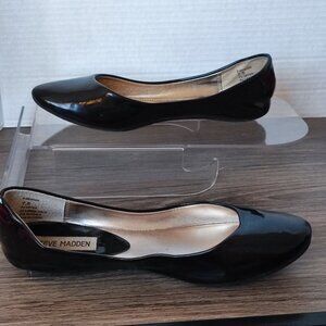Steve Madden Round Toe Ballet Flats Size 7.5 Glossy Black Dressy Shoes