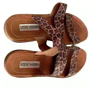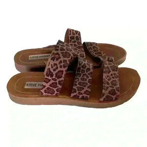 Steve Madden Sandals Leopard Print Pascale Slip on Sandal 3 strap Size 7