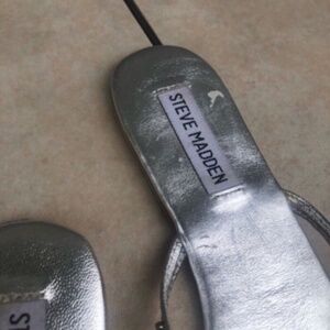 Elevate your summer style with these Steve Madden silver sandals, featuring a sleek metallic finish. The classic thong-style straps offer a comfortable fit, making them perfect for casual outings. Enjoy the blend of simplicity and elegance in every step.