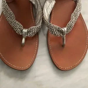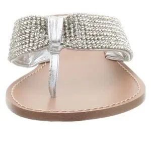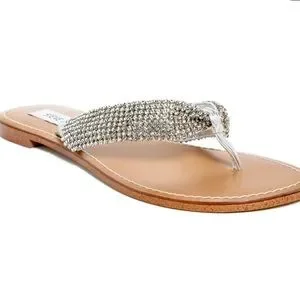 These Steve Madden sandals showcase a stunning silver rhinestone strap that sparkles with elegance. The tan leather footbed provides a comfortable base, making them ideal for both casual outings and sophisticated summer events. Their chic design effortlessly combines glamour with everyday wear.