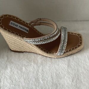 Steve Madden Silver Tan Wedge Sandals with Sparkling Straps
