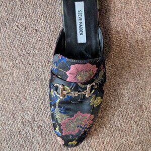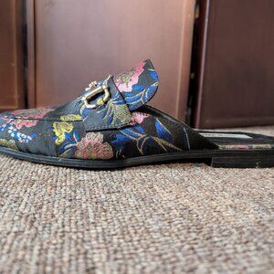 Size 11 floral with gold buckle. Never worn outside of the house.