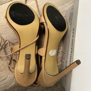 Steve Madden 'Presidnt' Strappy Heels size 7.5 US (women) in nude/beige faux leather