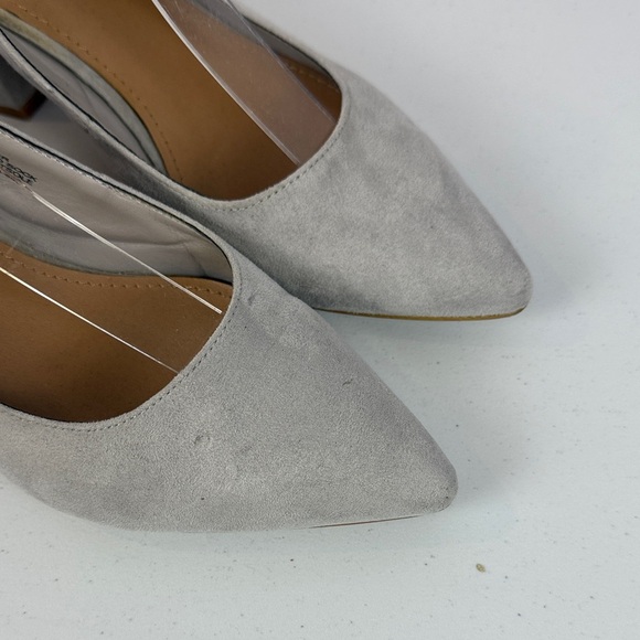 Steve Madden Suede Dusty Grey Pointed Toe Sling Back Block 2.5" Heel Size 8