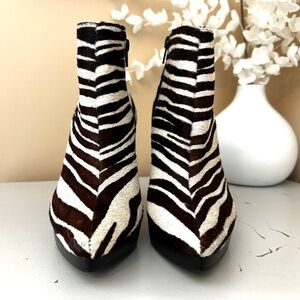 Steve Madden Survey1 Zebra PonyHair Brown/Cream Pointed Toe Ankle Boots Size 7.5
