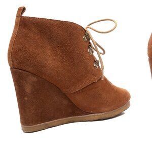 Steve Madden Tanngoo Suede Wedge Bootie Lace Up Boot Round Toe Shoes Brown Tan