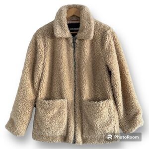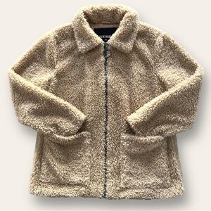 Steve Madden Teddy Jacket Zip Front with Square Pockets Sherpa Beige Sz M