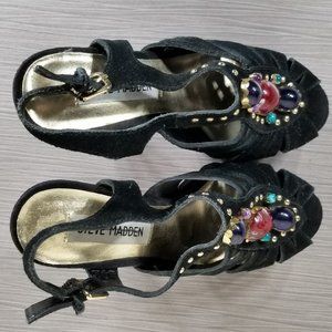 Steve Madden Tifanny Jewelled Platform Heels, Black Suede, Womens Size 5.5 M