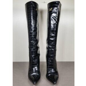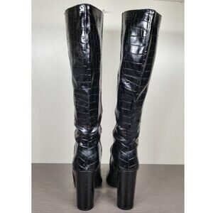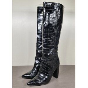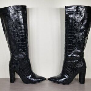 Steve Madden Triumph Croc-Embossed Boots, Black Faux Leather, Womens Size 8 M