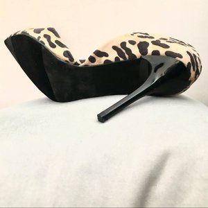 D'Orsay style with a circular vamp and quarters that curve downward into deep V-cuts at the sides for foot exposure.