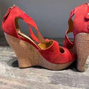 Beautiful red Steve Madden cork wedges in size 7.5 women's. Very Gently worn excellent shape.