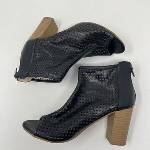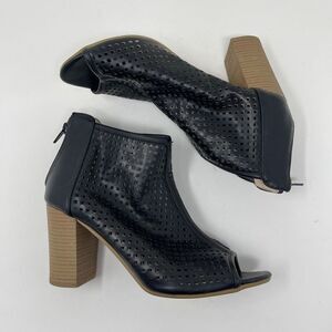 Steve Madden Women's Ankle Peep Toe Booties Block Heels Black Leather EU 38
