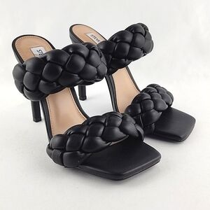 Steve Madden Women's Henley Black Heeled Puffy Braided Sandal Square Toe Sz 6.5M