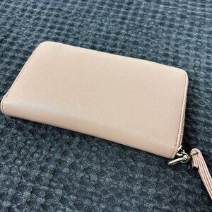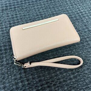 Steve Madden Womens Zip-Around Wristlet Clutch Wallet Pink Faux Leather