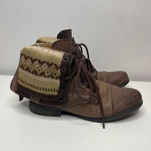 Steve Madden Womens Brown Leather Combat Boots Fold Over Lace Up Sz 6.5