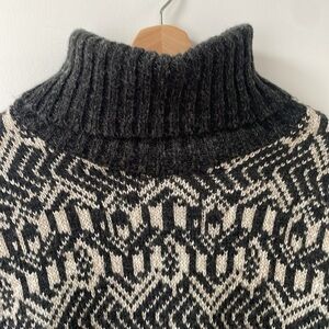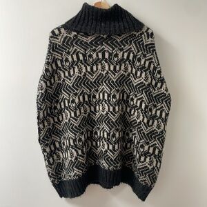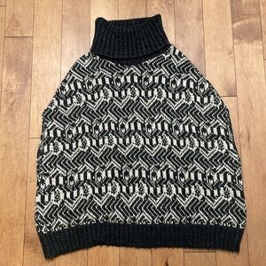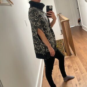 Steve Madden geometric poncho vest turtle neck black white knit OS