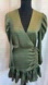 In an elegant, classy satin olive green - this dress is perfect for the fall and winter seasons. Mini wrap dress with a tie waist front, a v neckline, and ruched detailing along the side. Long sleeves and a v neckline.
