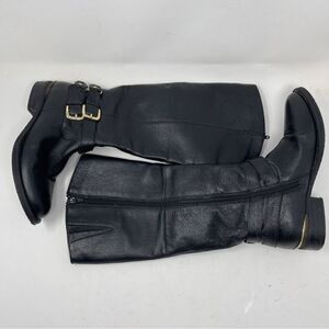 Steve Madden Avilla Black Riding Boots Leather Double Buckle Zipper Women's 5.5