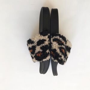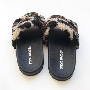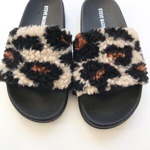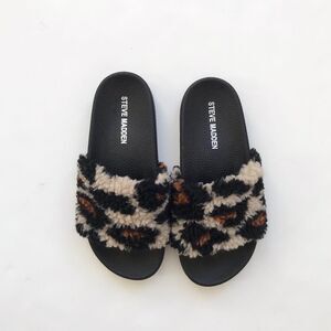 Steve Madden faux shearling-trim leopard slippers EUC size 2 youth