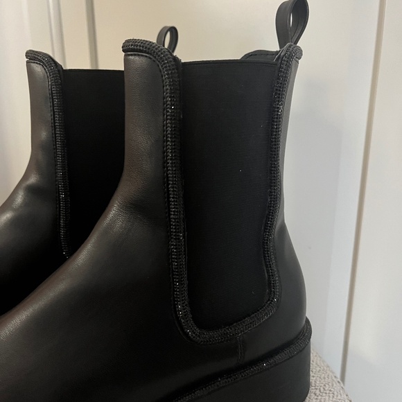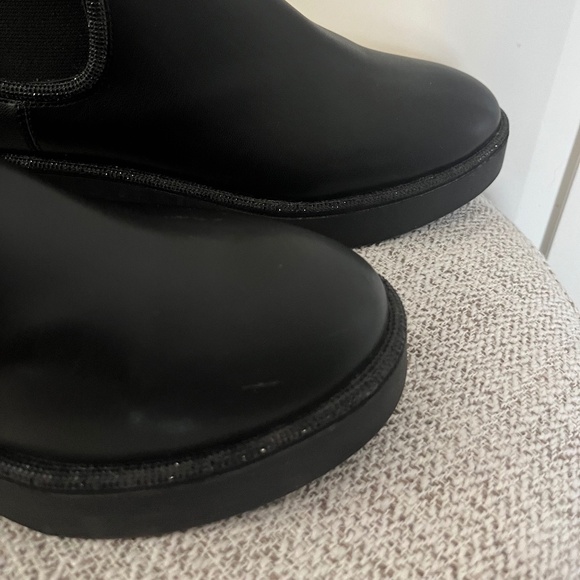 Solid black boots with the sparkle trim which is the perfect way to add a little splash of fun to a plain boot.
