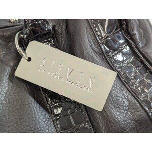 Steven by Steve Madden Leather Riveted Satchel Black Purse Handbag Unused