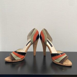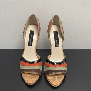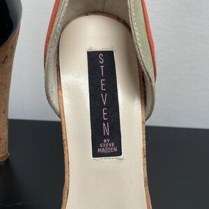Steven by Steve Madden Peep Open Toe Heels Vybe Cork Leather Multicolor 7.5