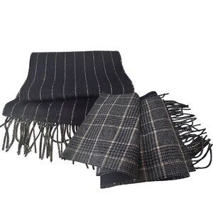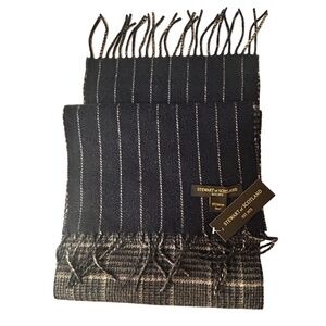 Stewart of Scotland Merino Wool Scarf Plaid Stripe Fringe Reversible Long UNISEX