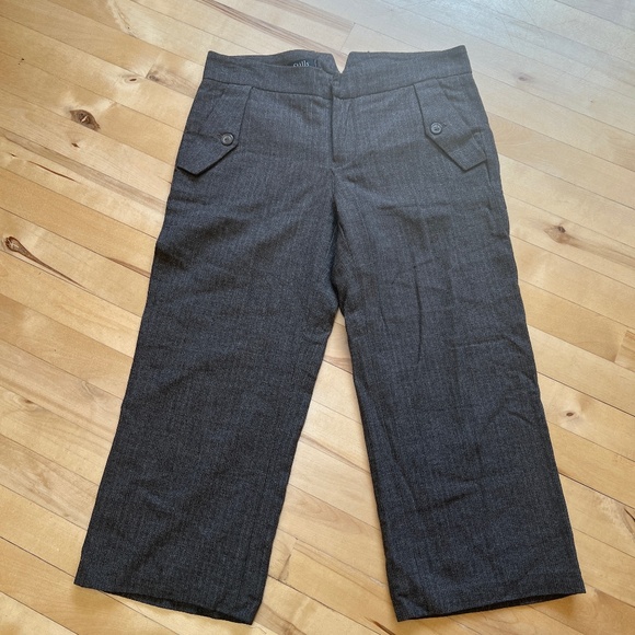 Vintage! Super cute 2/3 length Stills trouser. Grey pinstripes, button pockets on front and back. Wool and viscose, fully lined.