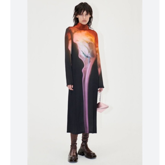 Abstract print midi dress with high collar