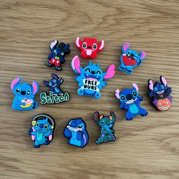 Set of colorful Stitch-themed shoe charms. Perfect for personalizing your footwear.